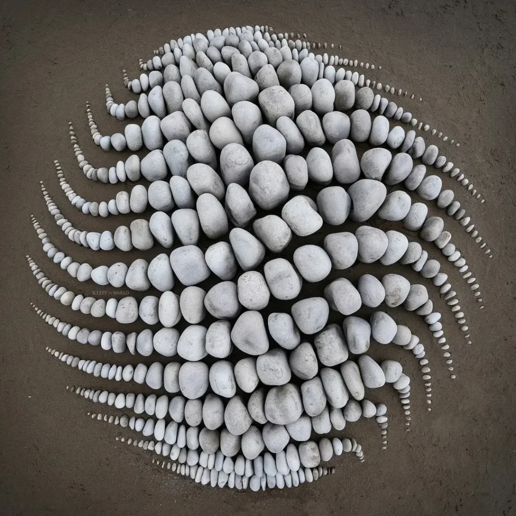 A land art installation carved into a beach, Fluidform spirals pebbles into flowing patterns that mimic ocean waves. This outdoor sculpture isn’t just viewed — it’s experienced with the rhythm of the sea.