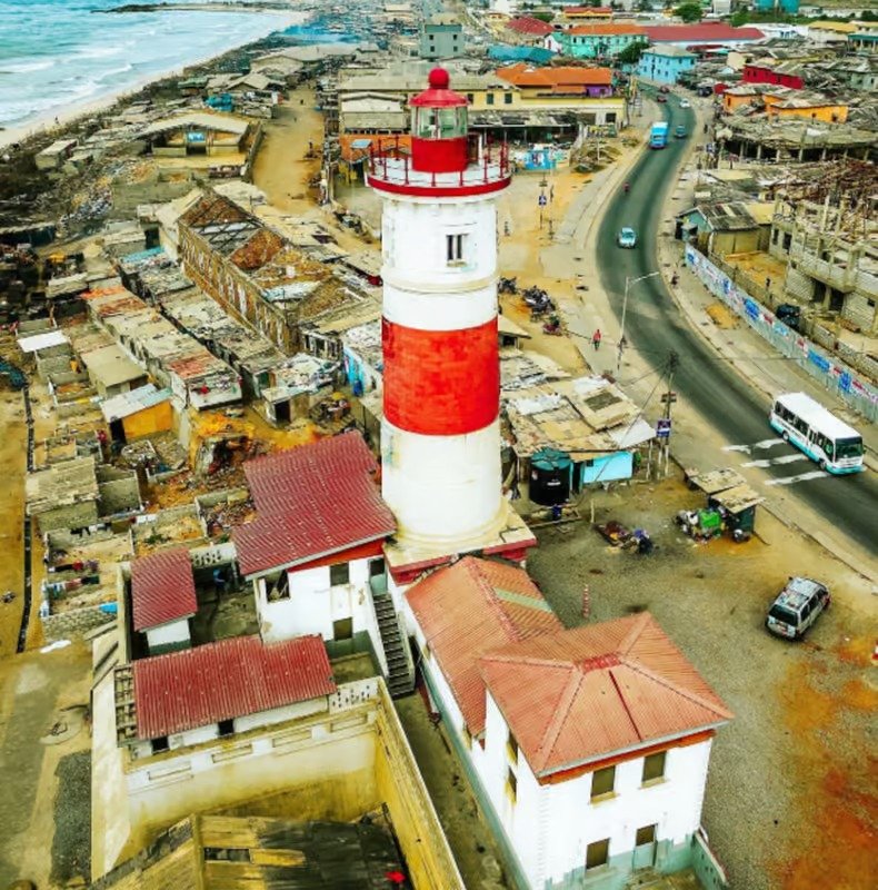 Above, the scarlet and white stripes of the iconic 1930s lighthouse pierce a hazy blue sky, standing as a silent sentry over a neighborhood that refused to be forgotten. To walk these streets is to feel the heartbeat of Accra—raw, rhythmic, and fiercely soulful.