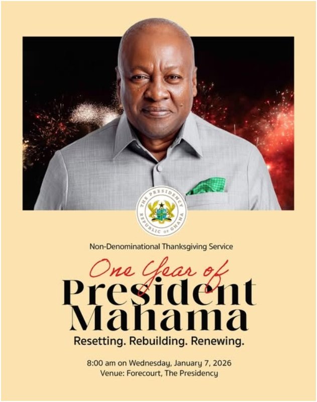 President John Dramani Mahama has marked one year in office with a heartfelt reaffirmation of his commitment to ethical leadership, national unity, and inclusive governance during a national thanksgiving service at Jubilee House in Accra. Speaking at the event attended by religious leaders, senior officials, and diplomats, Mahama said the past year’s progress isn’t measured solely by statistics but by the “restoration of hope, trust, and direction” for all Ghanaians. He reiterated his administration’s pledge to govern with integrity, competence, compassion and service above self, particularly for youth, the vulnerable, and those who feel left out of the development agenda.