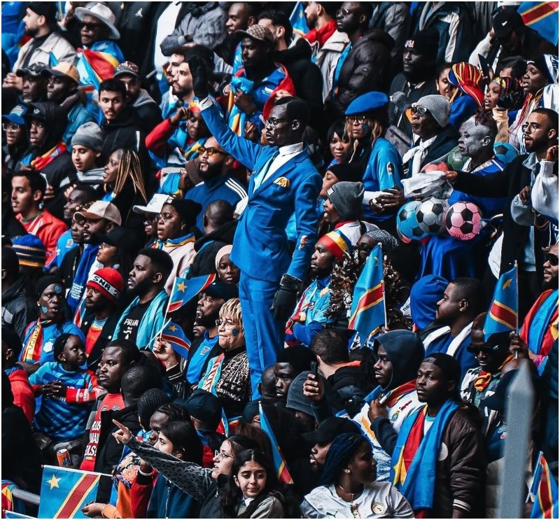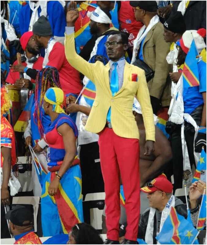 At AFCON 2025, a Congolese fan known as “Lumumba Vea” has become one of the tournament’s most talked-about figures by standing completely still throughout DR Congo’s matches.
