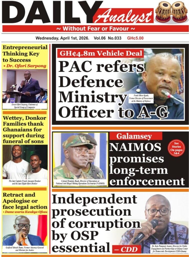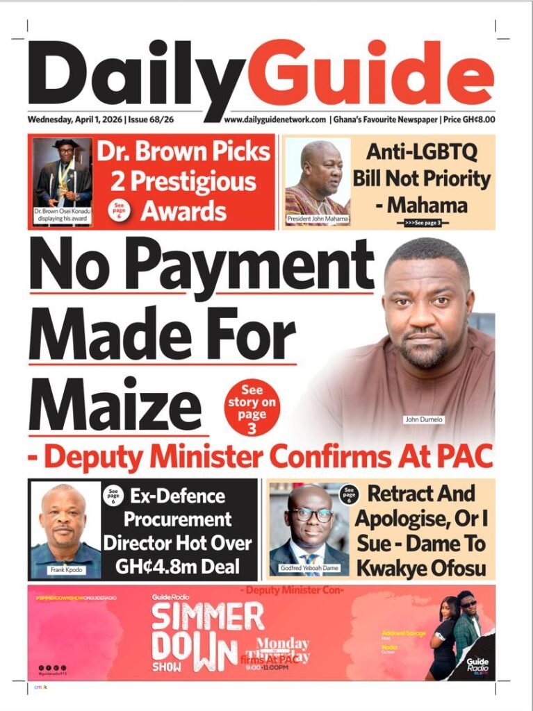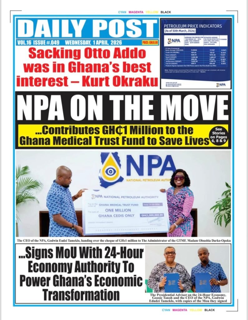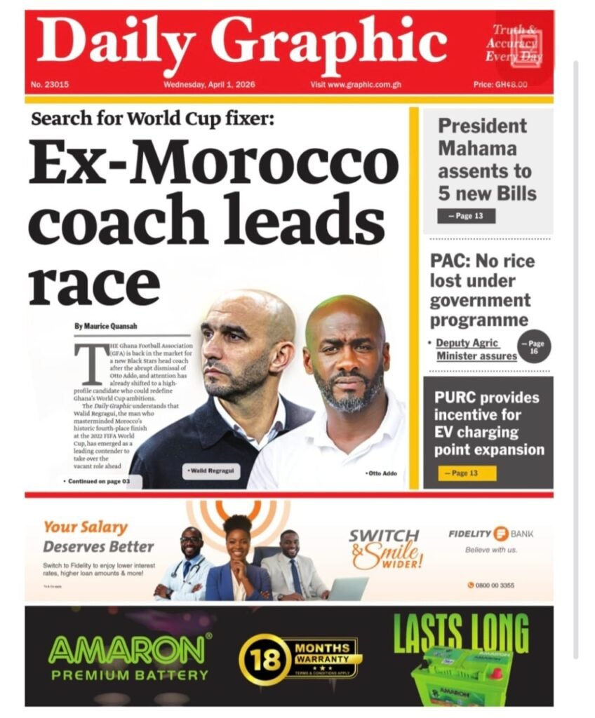 Wednesday, April 1, 2026. Stay informed with today’s front pages of Ghanaian newspapers, all in one place.