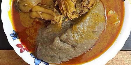 Konkonte—sometimes playfully called “face the wall”—is made from dried cassava flour stirred into hot water until it forms a smooth, elastic dough. Its earthy colour may appear modest, but that simplicity is part of its charm.