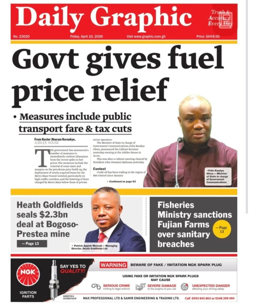 Friday, April 10, 2026. Stay informed with today’s front pages of Ghanaian newspapers, all in one place.