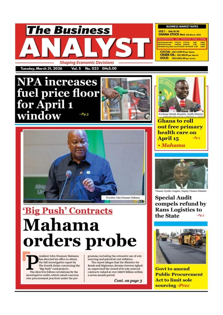 Wednesday, April 1, 2026. Stay informed with today’s front pages of Ghanaian newspapers, all in one place.