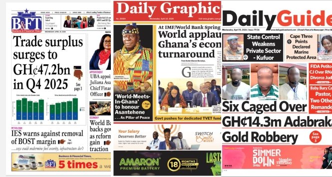 Thursday, April 16, 2026. Stay informed with today’s front pages of Ghanaian newspapers, all in one place.