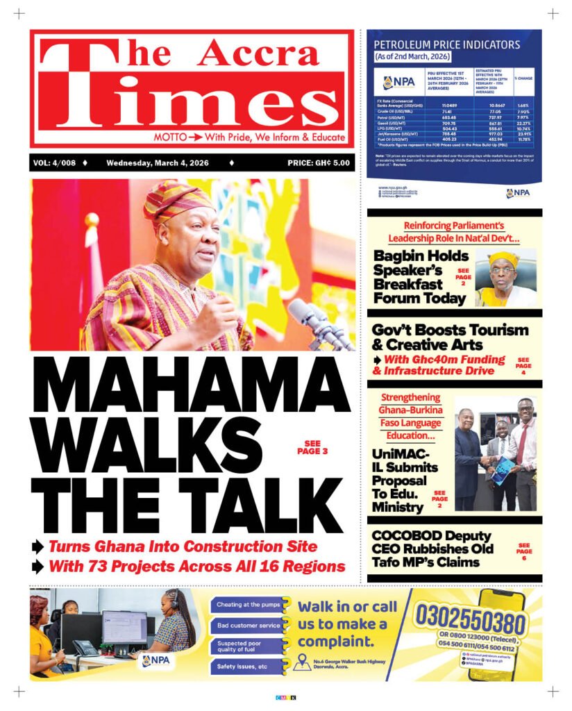 Wednesday, March 4, 2026. Stay informed with today’s front pages of Ghanaian newspapers, all in one place.