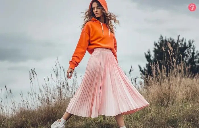Swap the blazer for a simple T-shirt, and the mood shifts completely. The look becomes balanced and relaxed—an everyday style that feels both casual and intentional. This flexibility has made the pleated skirt a favourite among young professionals and fashion enthusiasts who want pieces that work across multiple settings.