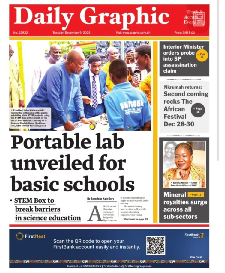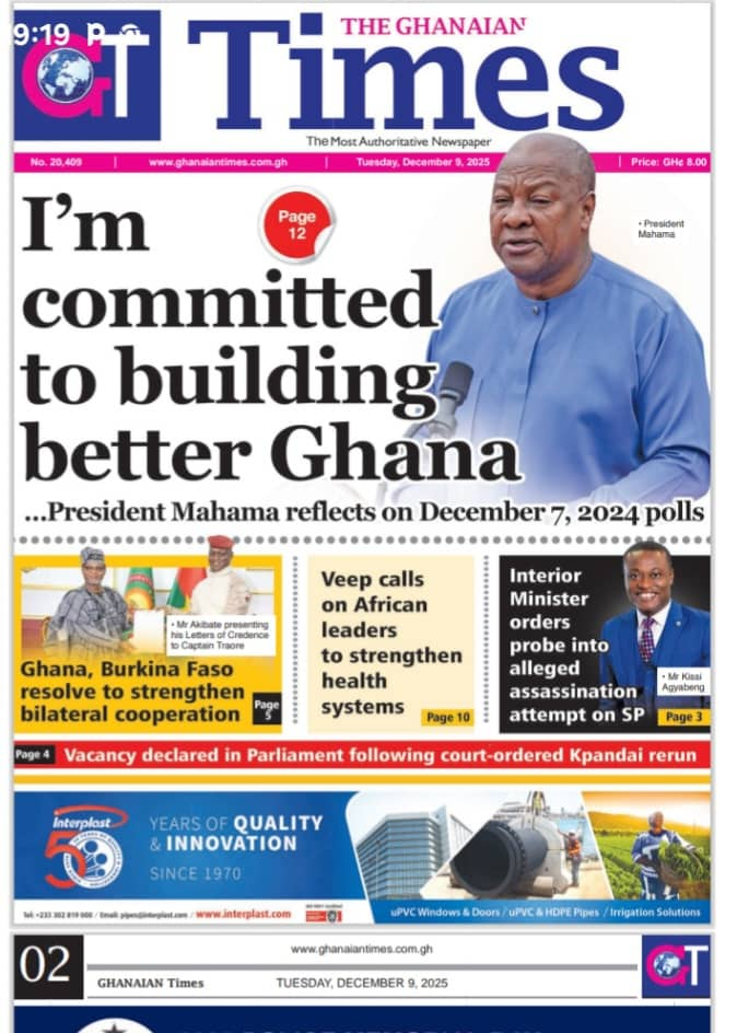 A compilation of leading stories from newsrooms in Ghana on December 9, 2025, show police-related controversies, religious litigation, family feuds, law enforcement operations, political rebuttals, and anti-corruption critiques.