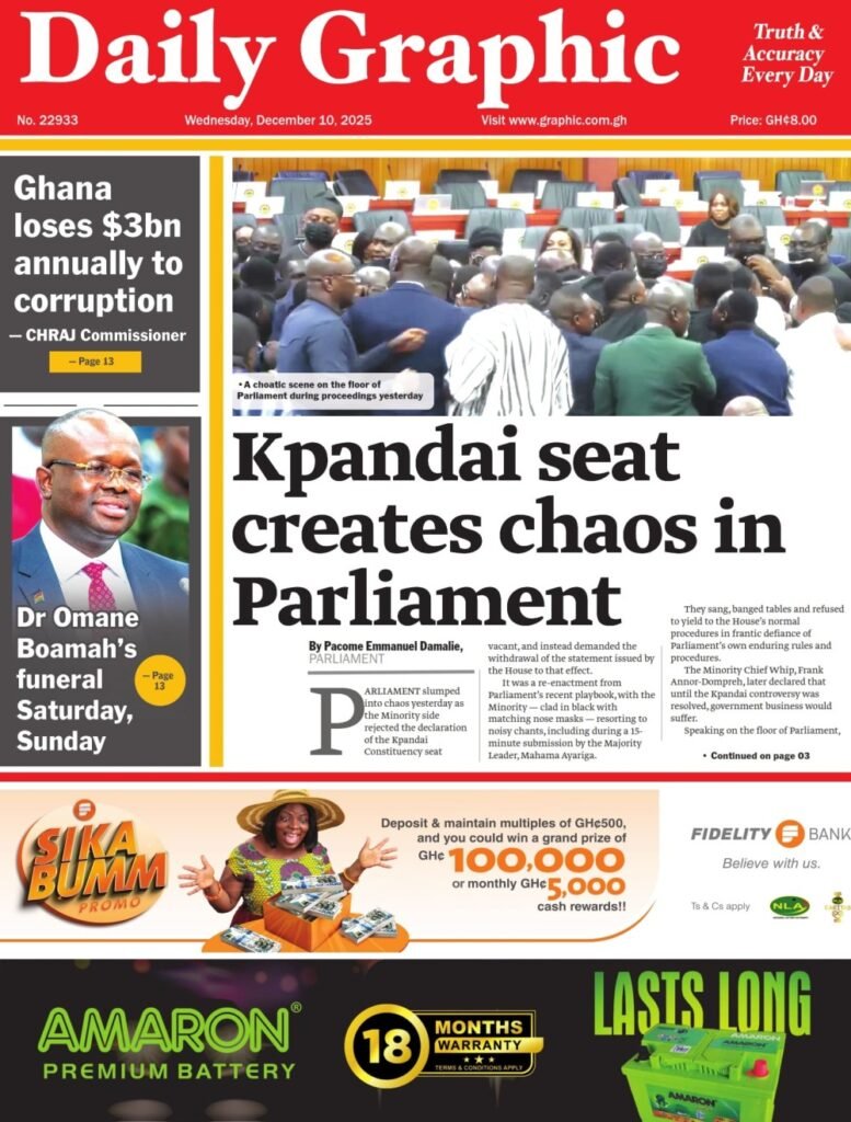 Top Headlines in Ghana: December 10, 2025 – Ghana Condemns Israel, ECOWAS State of Emergency, Chaos in Parliament…Plus More
